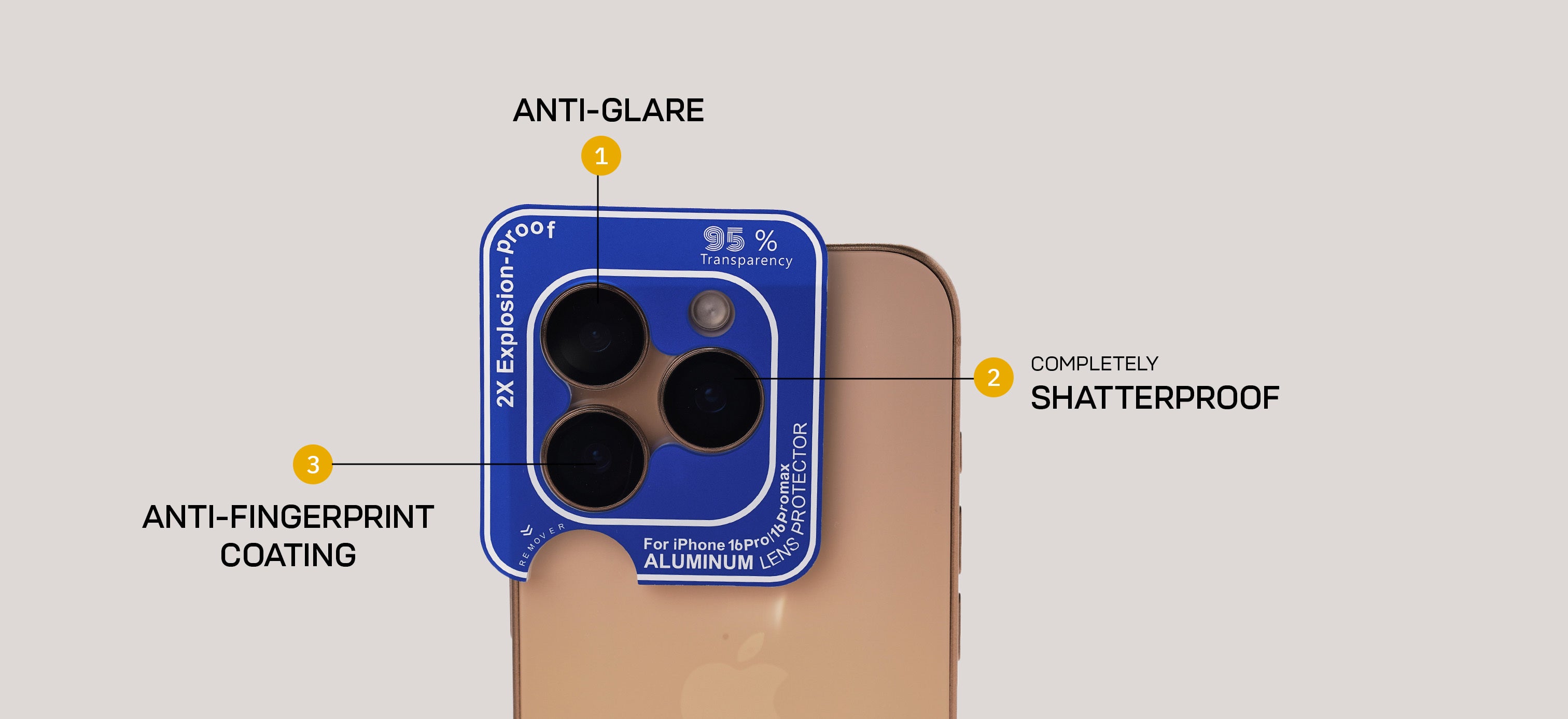 The Armour Lens Protector combines an aluminum metal ring with AGC glass from Japan, offering ultimate protection. It’s sweat, grease, and fingerprint-resistant, ensuring your iPhone 15 Pro Max lens stays flawless