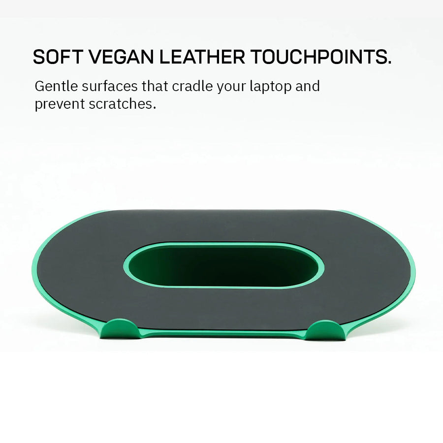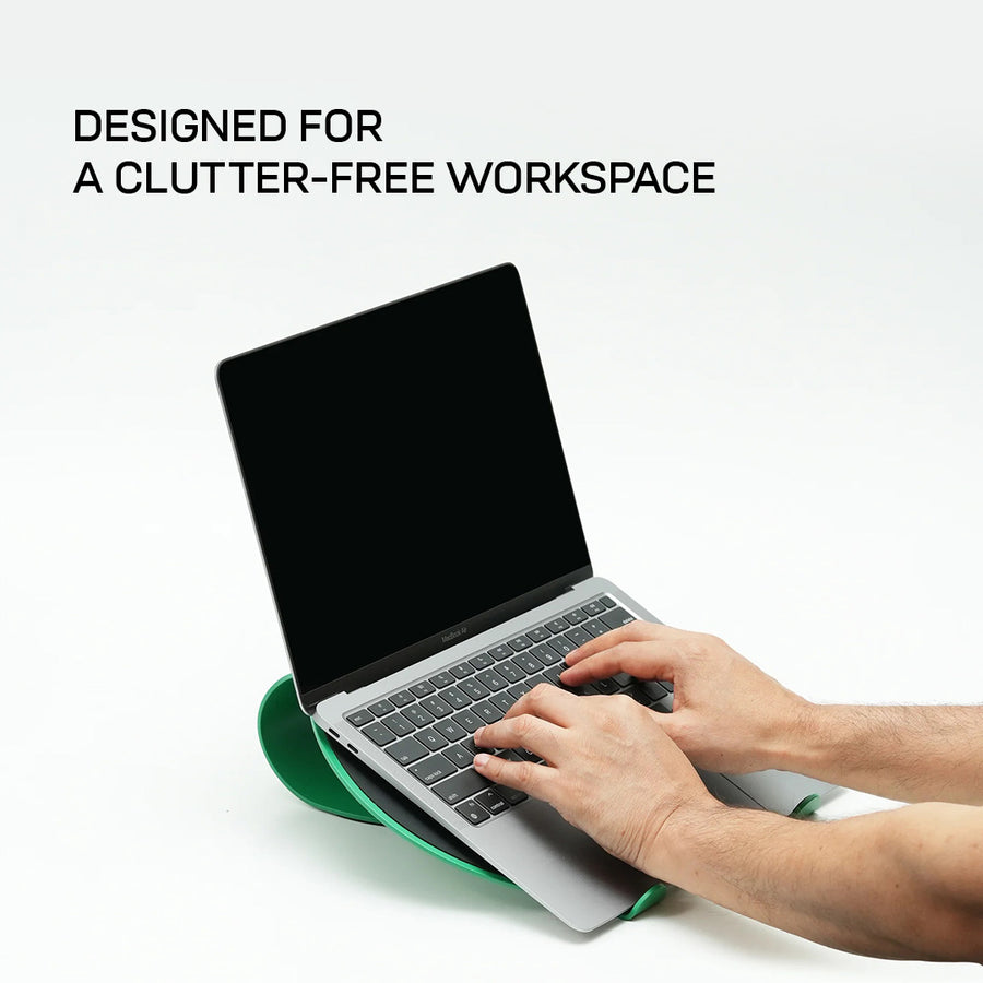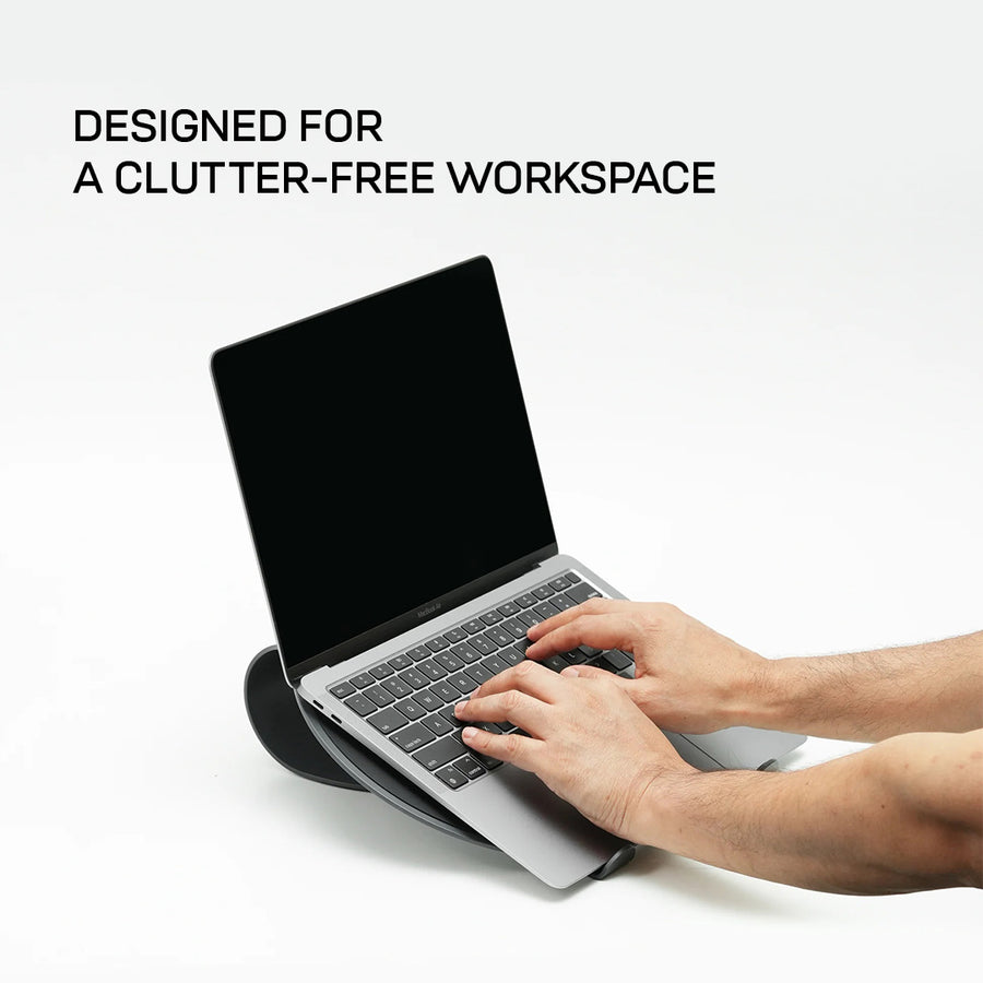 Formed around an organic capsule silhouette, the laptop stand's design blends seamlessly into your workspace while upgrading comfort and style.